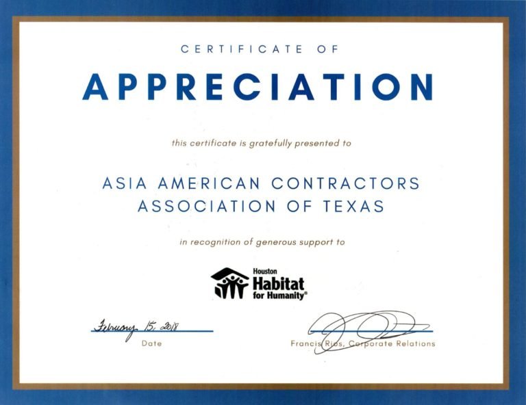 AACATX is proud to announce that we were presented with a Certificate of Appreciation by Houston Habitat for Humanity! They were helping those in need after Hurricane Harvey, and the AACATX community stepped in to donate funds, supplies, and some helping hands during their time of need. Thank you to everyone who contributed!